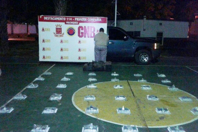 En horas de la tarde del domingo 19 de marzo, guardias nacionales pertenecientes al Destacamento 114, del CZGNB-11, con jurisdicción en el punto de control fijo peaje "Virgen del Carmen" ubicado en la troncal 6 de la carretera Machiques – Colon, se detuvo preventivamente un ciudadano que tras una revisión se logró hallar casi 40 kilos de droga ocultas en un vehículo de uso particular.